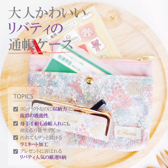 【メール便送料無料/あす楽対応】【1500円以上(税抜)でノートプレゼント】【レビューご記入で300円クーポン配布】リバティ 通帳 母子手帳ケースも入る おしゃれ フラットポーチ FLB-02